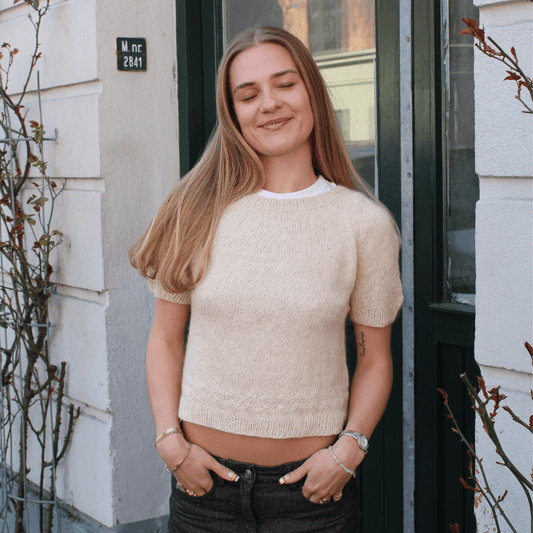 Om garnet: Cotton Cloud er en blød og elastisk blanding af bomuld, alpaca og polyamid. Åndbar og komfortabel – perfekt til sommertoppe, babystrik og lune accessories.
