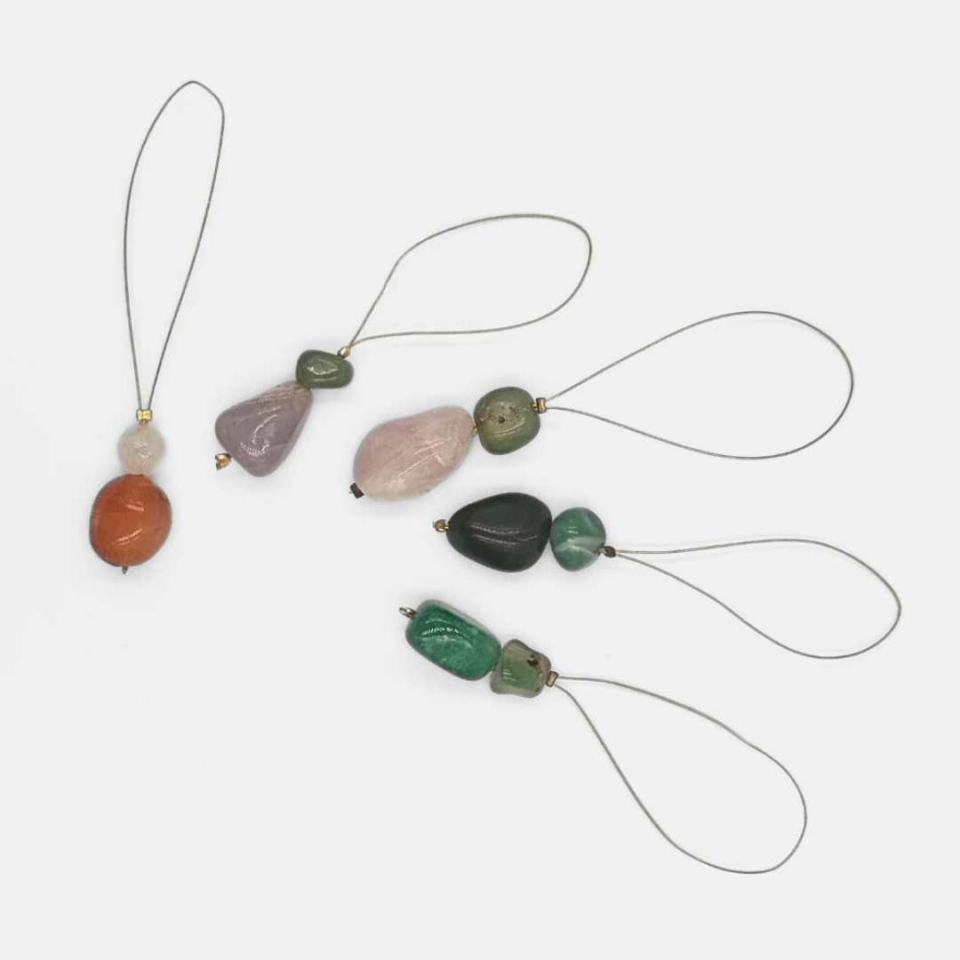 Dette sæt indeholder 5 smukke maskemarkører, håndlavet med unikke natursten på wire. Da det er natursten, vil farvenuancerne variere, hvilket gør hver markør helt unik.